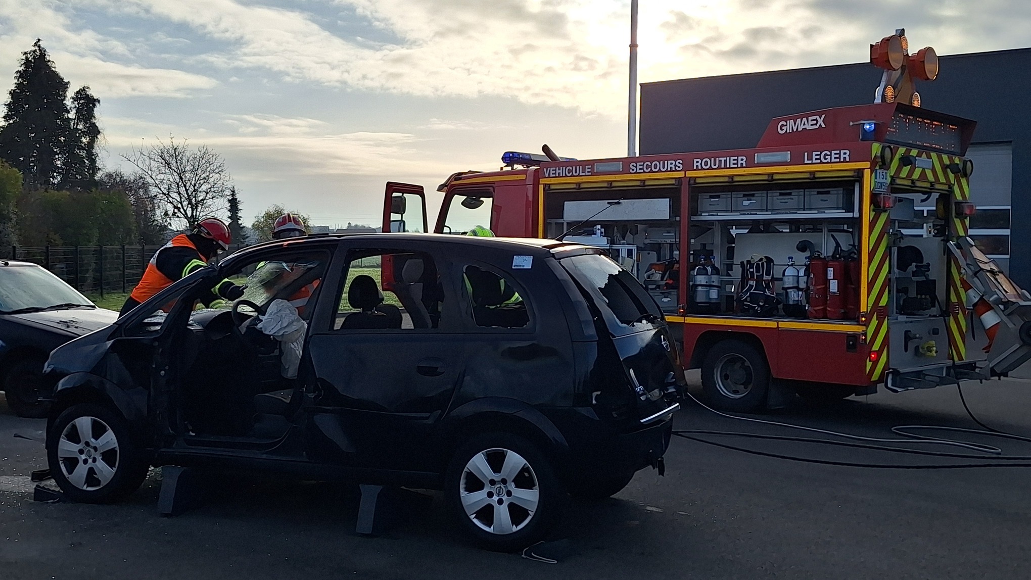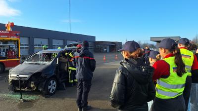 Une démonstration de #secours routier avec le VSR : l'équipe en exercice d'entraînement a procédé à la mise en sécurité des lieux d'accident, au découpage du véhicule puis au secours aux victimes, avant d'être appelée sur une intervention